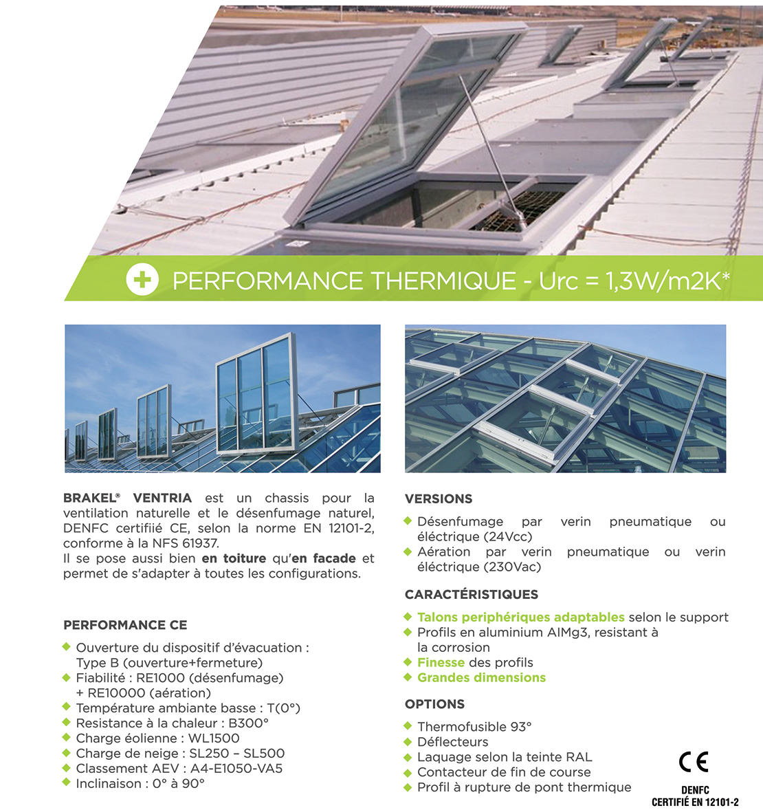 BRAKELVENTRIA est un chassis pour la ventilation naturelle et le désenfumage naturel, DENFC certificié CE selon la norme EN 12101-2. Grace à ses talons périphériques adaptables, il permet de se poser sur des verriéres pyramidales, vérrieres bipentes, verriéres monopentes, des shed ...