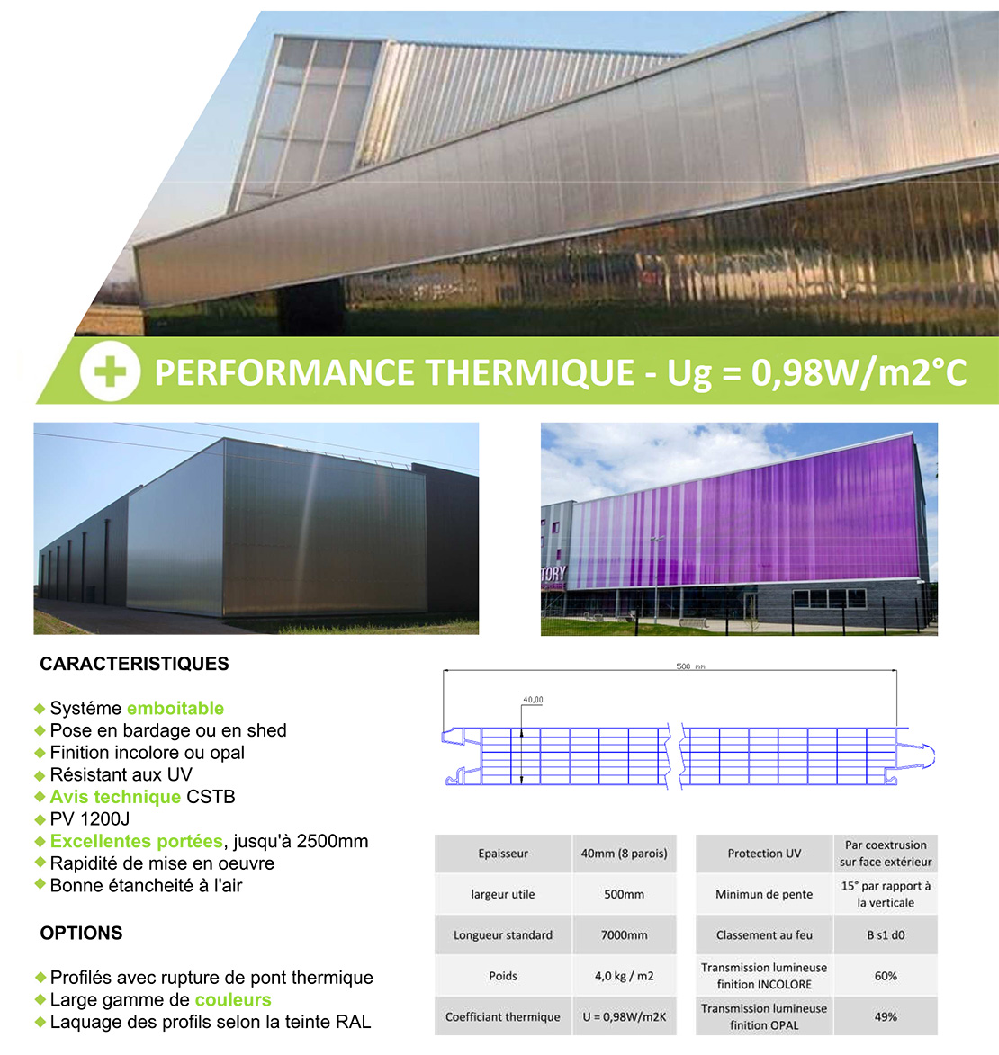 TECHNIDOME peut vous fournir des solutions de plaque de bardage Translucide, des bardages en polycarbonate (PCA) et des toitures en polycarbonate (PCA) avec des systémes emboitables (akyver (r) PANEL40 - POLITEC MODULIT) ou des systémes connectables (DS SMTIH KAYSERSBERG CONNECT16 - KOSCON BDL25).
