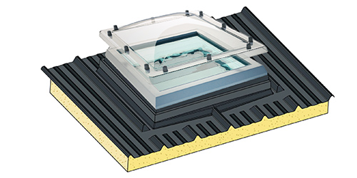 TECHNI-EMBASE COUPOLE VITREE TEC est un lanterneau avec une embase qui permet d’apporter de l’éclairement Zénithal, de l’aération naturelle ou un accès toiture, sur une toit en bac acier avec régulateur ou en panneau sandwich.